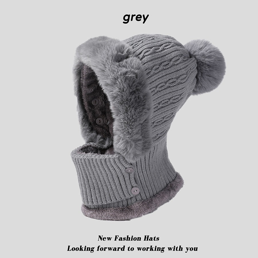 Bonnet 3 en 1 pour femme (Bonnet tricoté + écharpe + cache-oreilles)